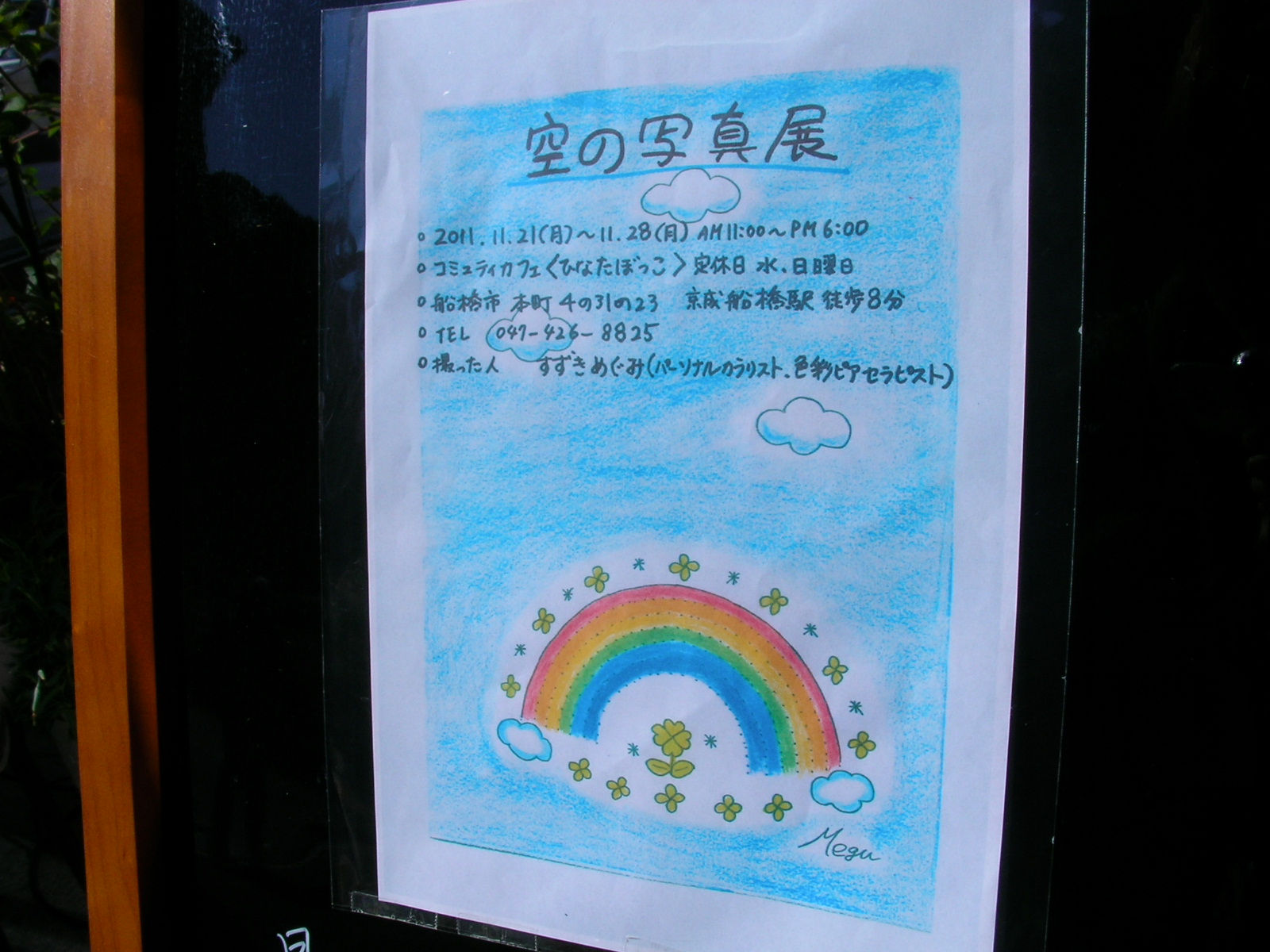 11月21日〜28日 鈴木恵「空の写真展」 2011年11月20日 最終更新日時 : 2011年11月20日 econetaono カフェのボックスショップに出店されている鈴木恵さん。 今回は、「空の写真展」ということで、カフェのギャラリースペースにたくさんの写真を展示しています。 ぜひ、お立ち寄り下さい。