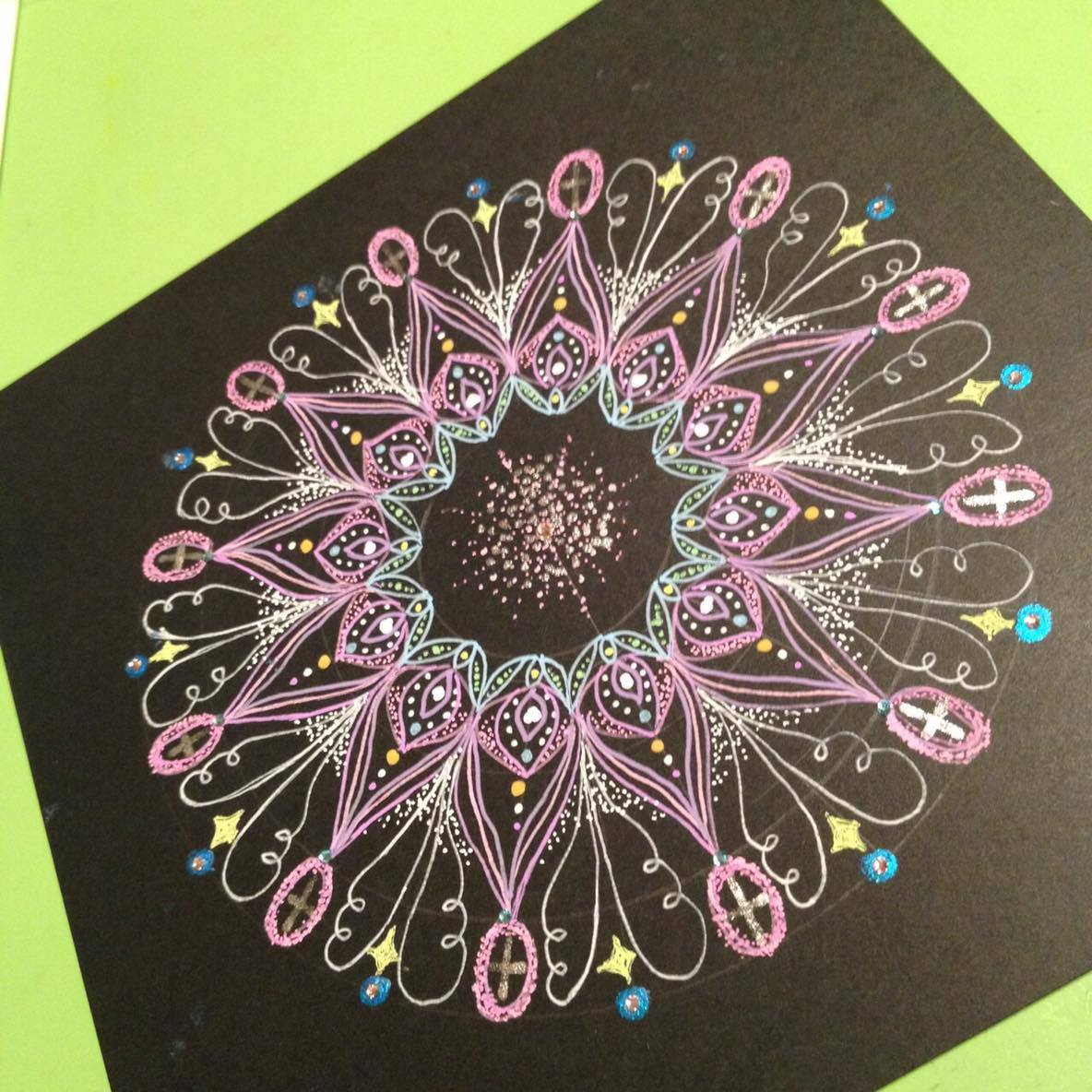 作品展で好評だった、ローズウィンドウとと点描画の体験教室。