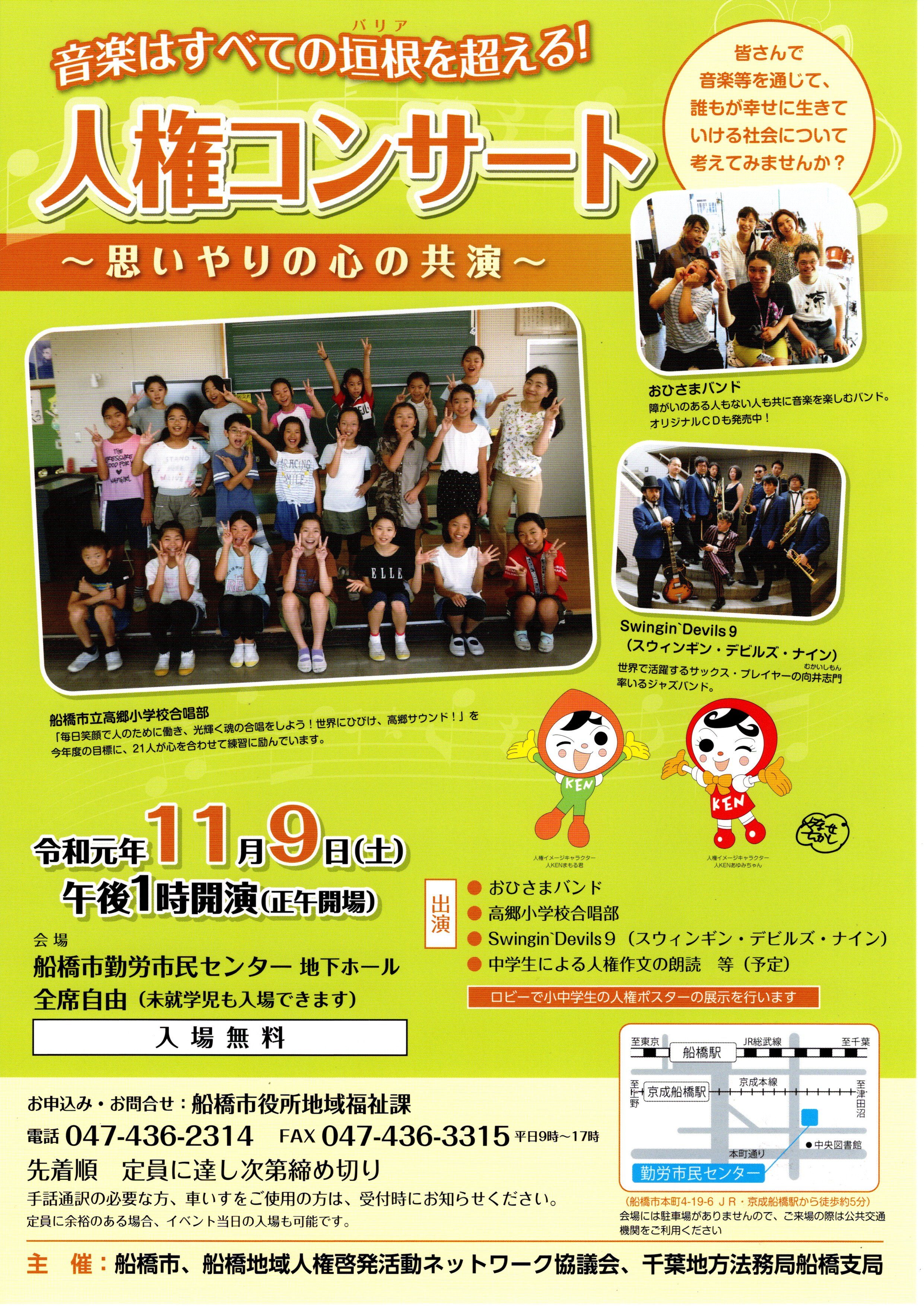 11月9日(土)の「人権コンサート」(船橋市主催)に出演します。