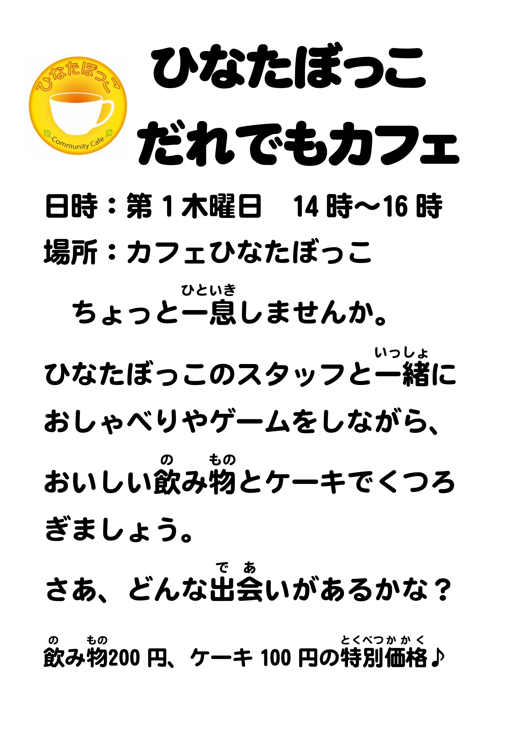 ひなたぼっこのスタッフと一緒に、 おしゃべりやゲームをしながら、