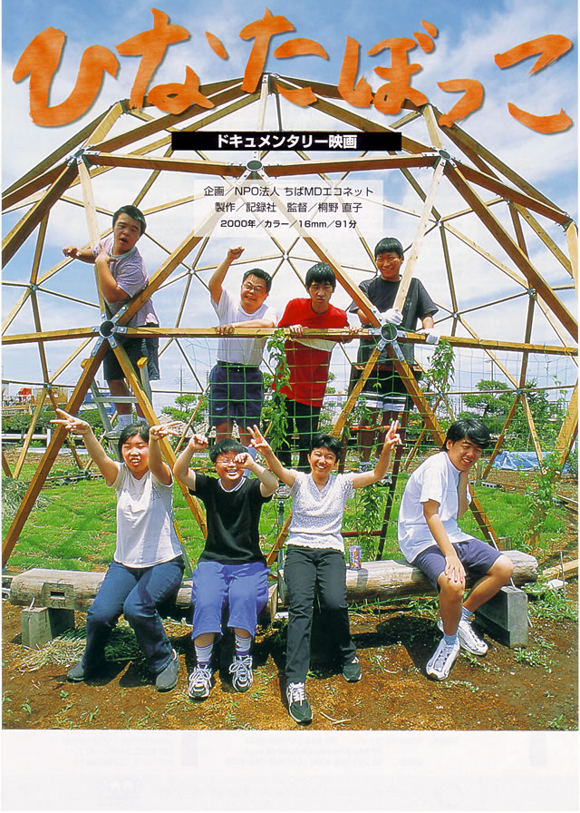 1999年2月、遊休農地での取り組みと、知的障害をもつ5人の若者たちの普通高校での生活をテーマにドキュメンタリー映画「ひなたぼっこ」を企画しました。そして、記録社と共同製作を行い、1年半かけて撮影、2000年秋に完成しました。2000年10月28日に千葉市で開いた完成試写会を皮切りに、全国で上映会を行いました。