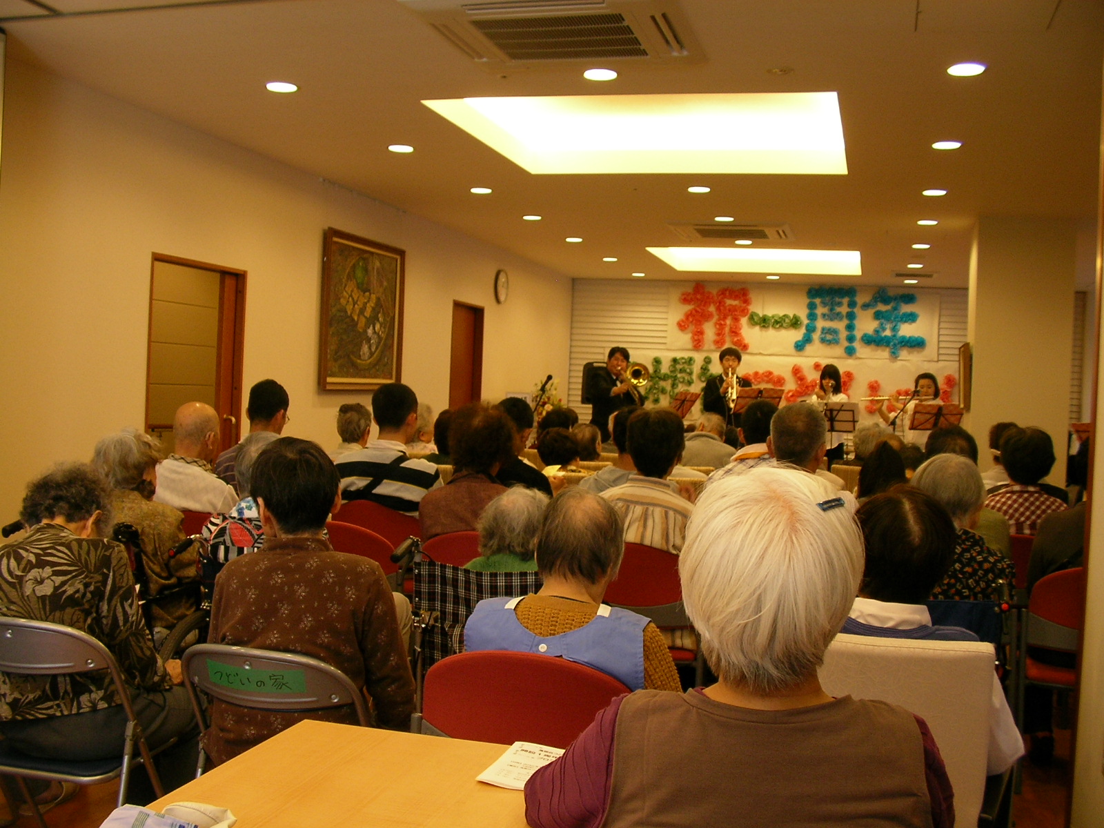 高根台つどいの家の1周年記念イベントでは、入居者の方や、近隣の方など、100名近い方々に演奏を届けました。